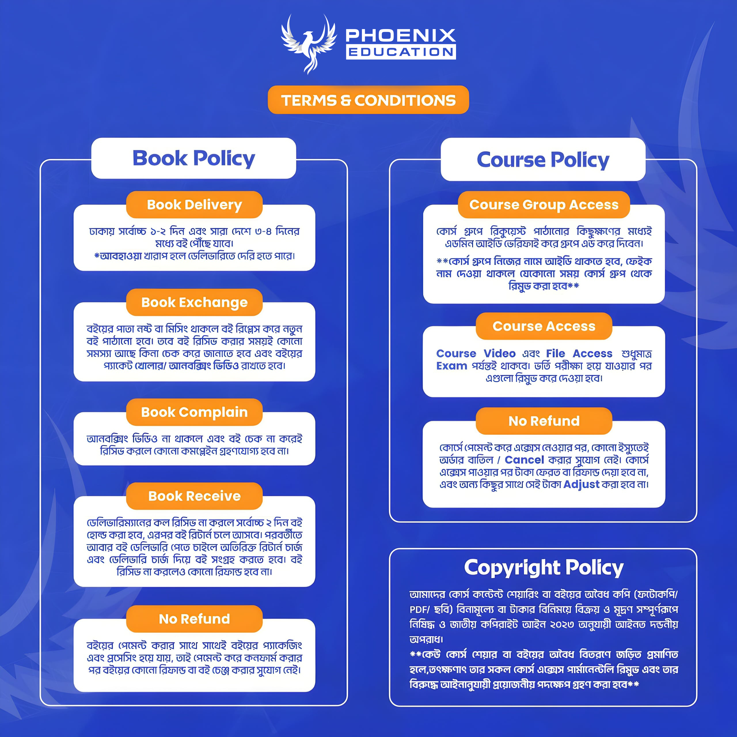 By using our website (www.phoenixedu.com.bd), applications, or any associated services or products, you agree to these Terms & Conditions. If you disagree with any part of these terms, please refrain from using our services.